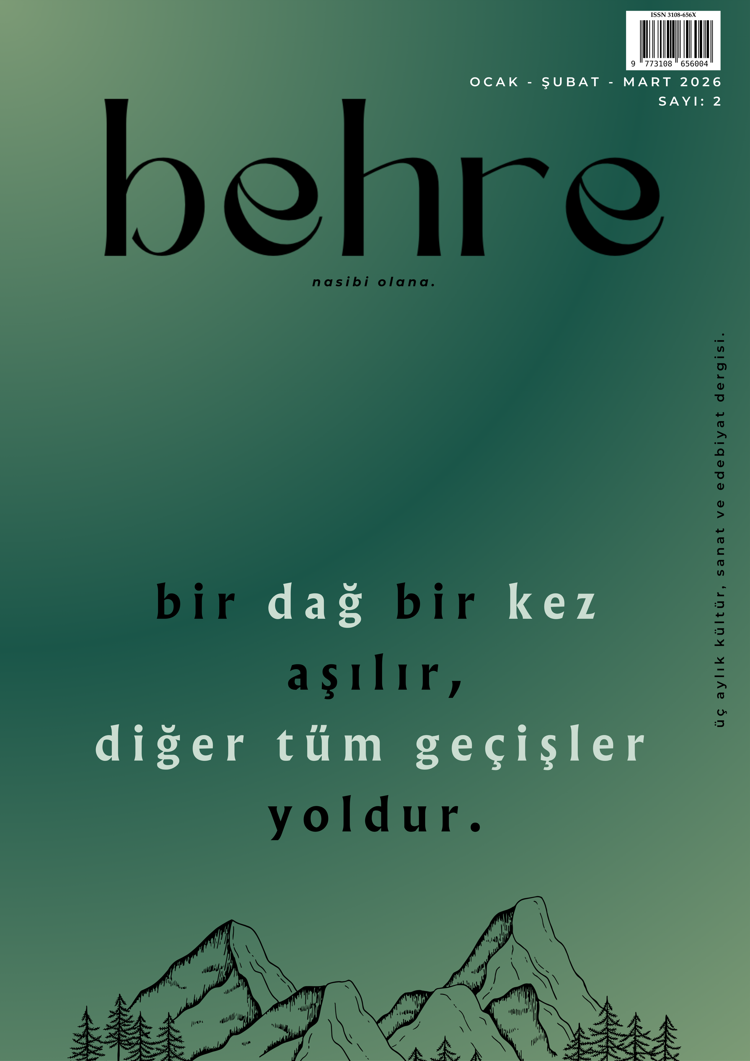 edebiyat dünyasına güzel ve kalıcı izler bırakabilmek, yazdıklarını daha geniş kitlelere ulaştırmak isteyen yazarları ağırlayacak ve kültür-sanat faaliyetleriyle hayatlarımızda yerini almasını hayal ettiğimiz dergimiz Behre de sizlerle.
